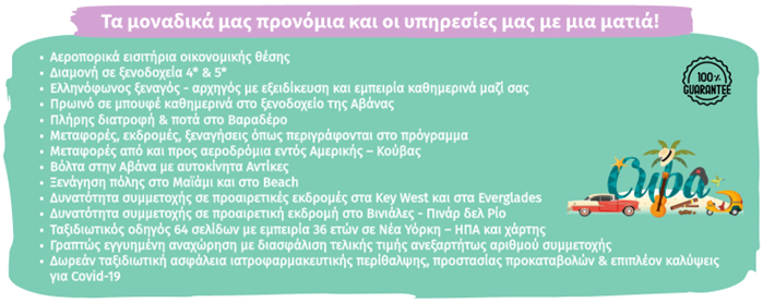 Οι συναρπαστικές εμπειρίες του ταξιδιού σας θα σας κάνουν να αναπολείτε τις όμορφες στιγμές που περάσατε στην Κούβα και στο Μαϊάμι για πολύ καιρό!