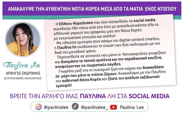 Με ζεστή φιλοξενία, υπερσύγχρονα μέσα μαζικής μεταφοράς και ποικίλες εμπειρίες, η Νότια Κορέα αποτελεί έναν προορισμό που αξίζει να επισκεφτούν ταξιδιώτες που αναζητούν έναν αρμονικό συνδυασμό ιστορίας, πολιτισμού και μοναδικών γαστρονομικών επιλογών.