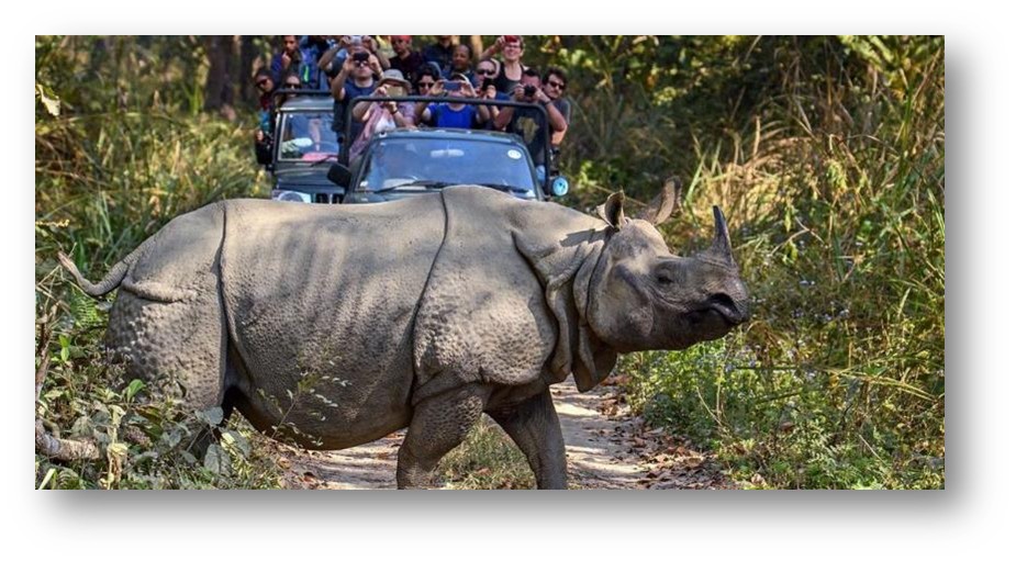 Το υποτροπικό κλίμα που ευνοεί την πλούσια και πυκνή βλάστηση είναι η σημαντικότερη αιτία της μεγάλης συγκέντρωσης άγριων ζώων όπως ρινόκεροι και αρκούδες, έως και τις προστατευόμενες πλέον τίγρεις της Βεγγάλης, ενώ η έντονη παρουσία του υγρού στοιχείου κάνει την περιοχή έναν από τους μεγαλύτερους υδροβιότοπους της περιοχής. Ετοιμαστείτε λοιπόν για ένα μοναδικό σαφάρι με τζιπ, και κανώ !!!! Μια ακόμα συγκλονιστική μέρα σαν κι αυτές που χρόνια τώρα σας έχουμε συνηθίσει! Δείπνο και διανυκτέρευση στο ξενοδοχείο.